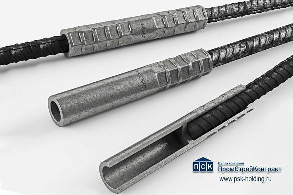 Переходная обжимная муфта PRESKO для соединения арматуры диаметром 18/16 мм. Разработанный ГК ПСК метод механического соединения арматуры (МСА) дает возможность соединять стержни не только одинаковой, но и разной толщины, начиная со стержней Ø 16 и 18 мм и заканчивая диаметром 36 и 40 мм, с использованием переходной обжимной муфты при помощи гидравлического оборудования PRESKO.