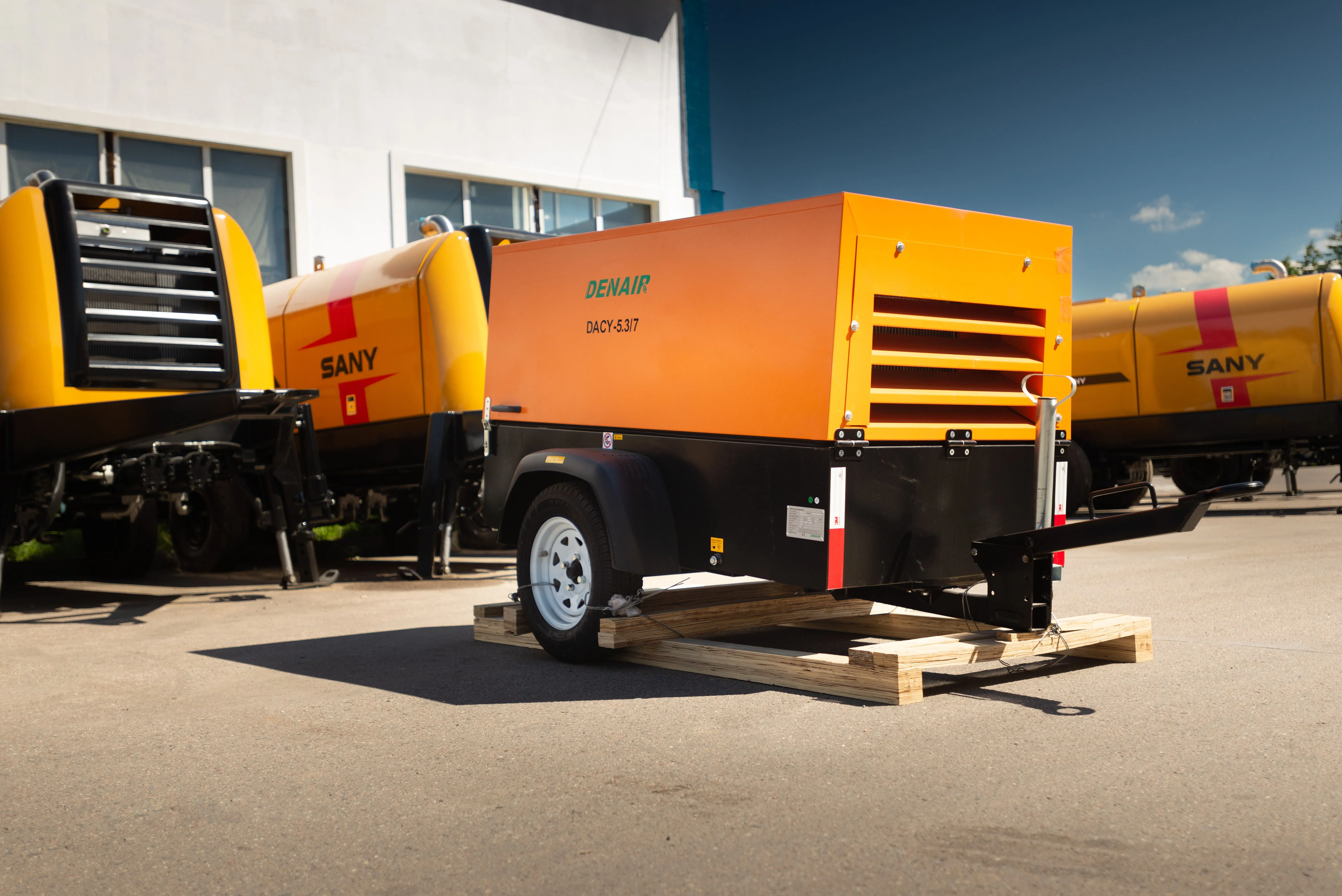 Переносные винтовые воздушные компрессоры Denair широко используются во всех видах тяжелых условий эксплуатации. Они востребованы в таких отраслях, такие как горнодобывающая промышленность, гидроэнергетика, добыча нефти и газа, скважина, верфь, строительство, химическая промышленность, карьер, пескоструйная обработка, опрессовка трубопровода, общественные работы, и т.д.