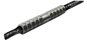 Муфты с конической резьбой предназначены для соединения арматурных стержней, на концах которых предварительно нарезана коническая резьба. Благодаря особой геометрии, резьба заходит не только по гладкой поверхности стержня, но и частично охватывает его рифлёние (рёбра), что обеспечивает максимально плотное прилегание и высокую прочность соединения.